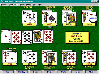 WSP is more of an computer adventure than a straight poker simulation, and it offers none of the statistical or custom options available in Wilson’s Turbo products. But WSP is certainly the most "fun" of all the simulations. The animation, sound effects, banter at the table, and even the dealer’s comments really give you the feeling of being in a casino poker room. The opponents are tough, and you CAN’T adjust or program them. That’s the way it is in real life.